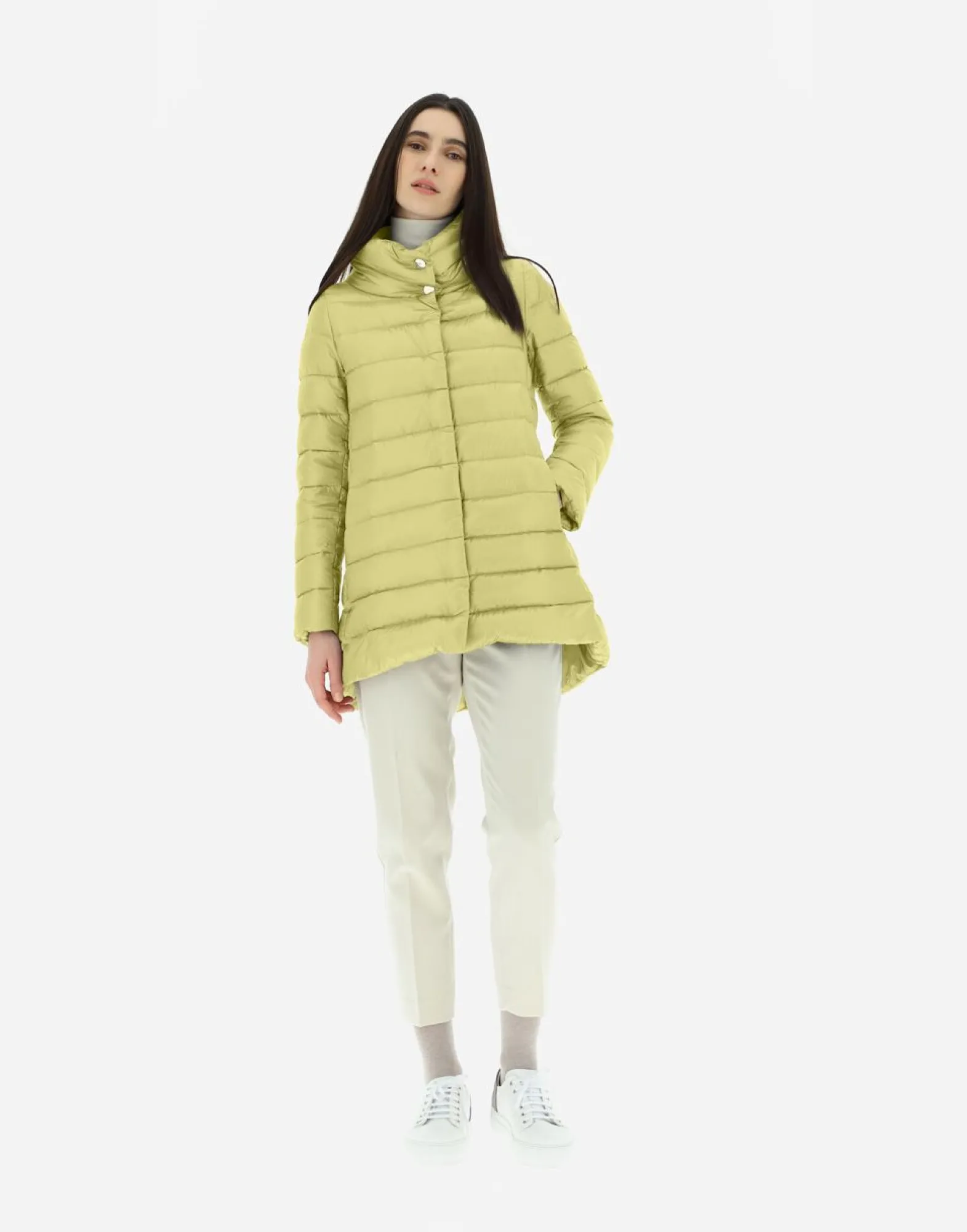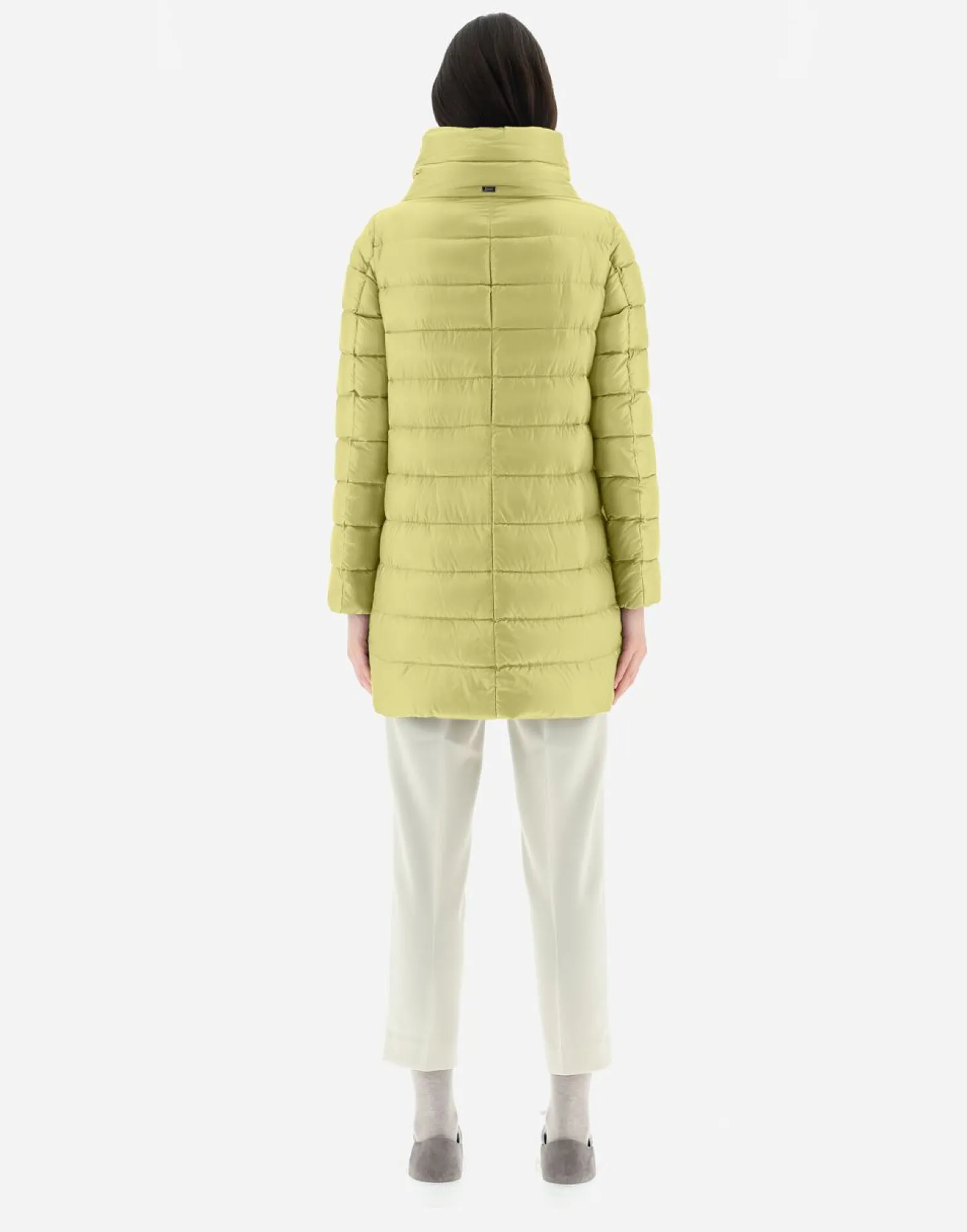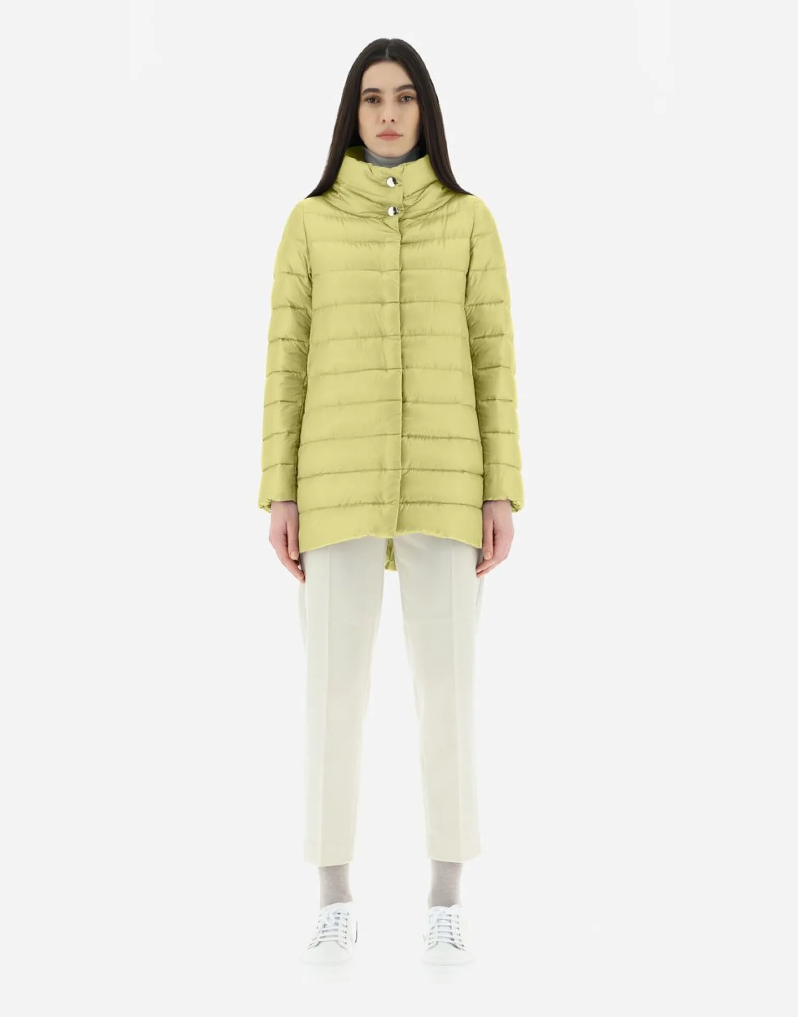 L’Imbottitura Ad Iniezione In Finissima Piuma D’Oca E Il Nylon Dall’Effetto Serico Rendono Il Capo Estremamente Leggero E Impalpabile.